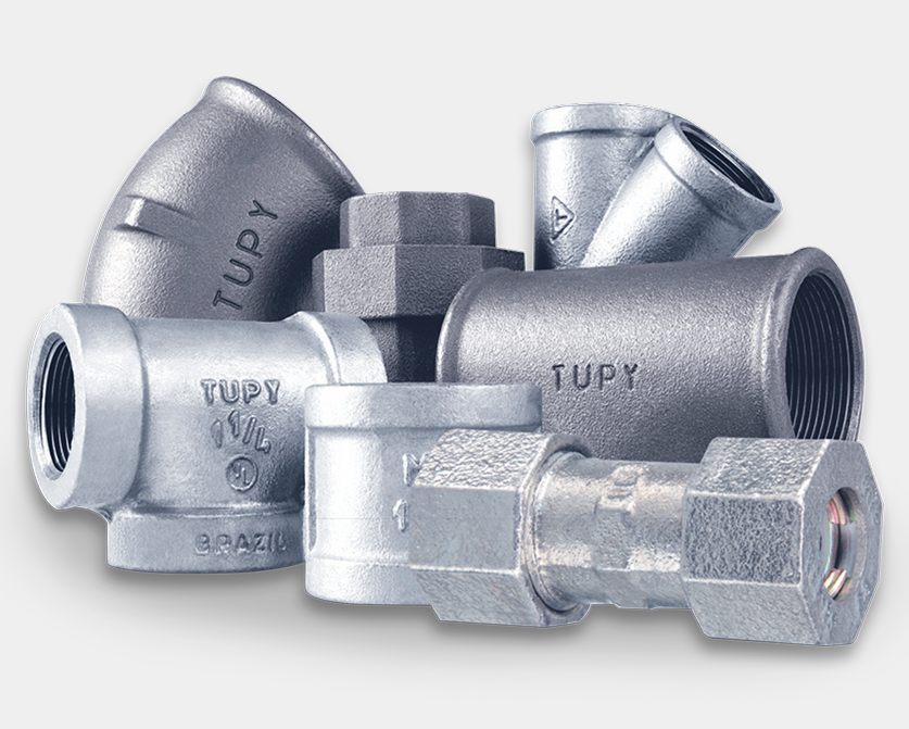 Linha Tupy com mais de 80 anos de tradição em tubos e conexões galvanizadas. Produtos reconhecidos por qualidade, robustez, versatilidade e fácil instalação. Utilizados em construção civil, indústria, agricultura, saneamento, mineração e siderurgia. Atendem ABNT NBR 6025, ASTM A53 e possuem certificação ISO 9001.